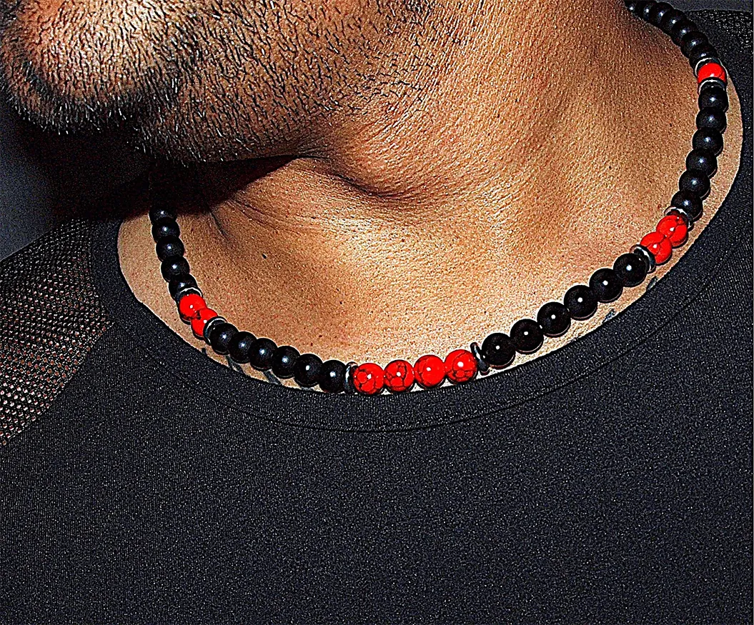 Handmade Men Necklace red Turquoise and Black Onyx Natural Stone